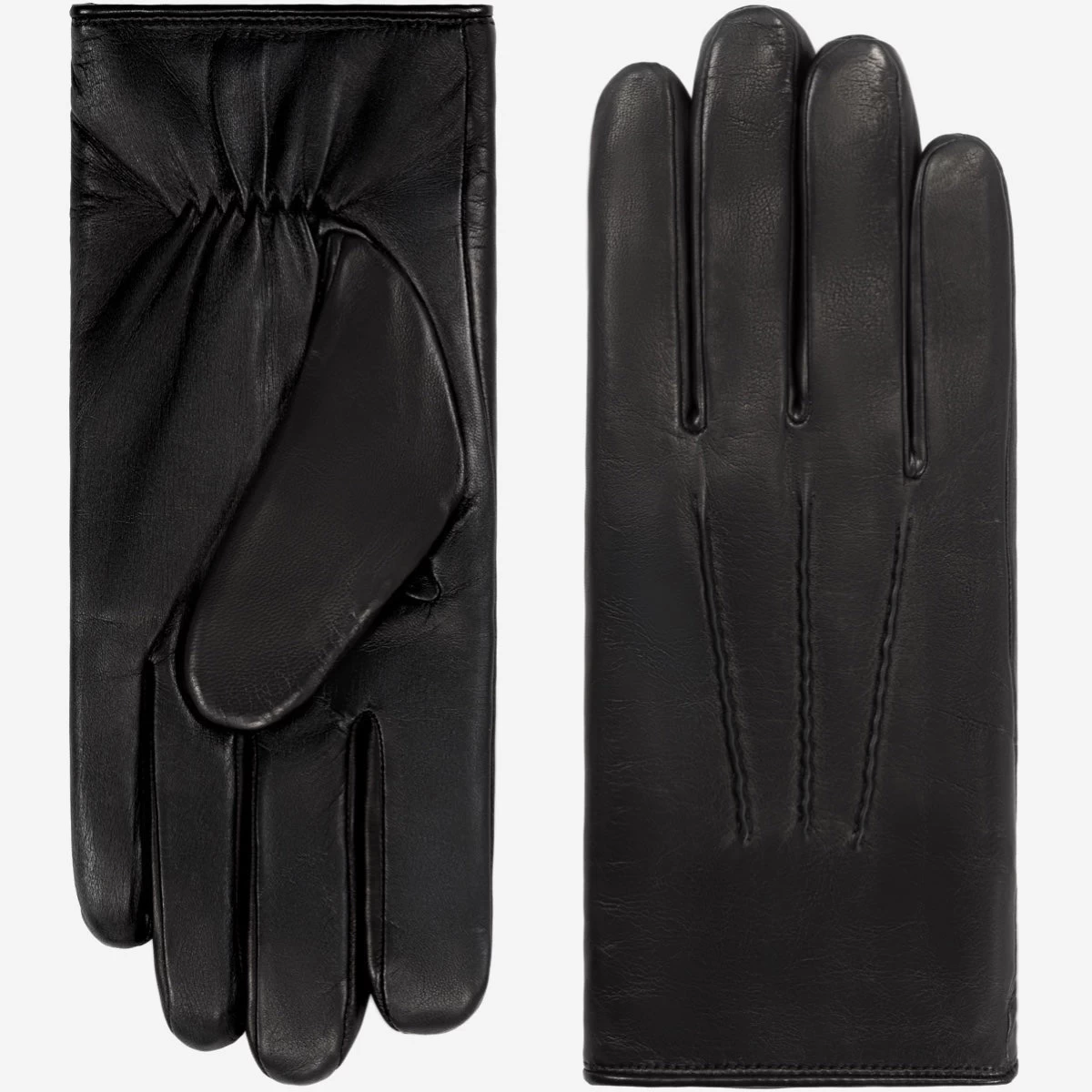 Leather: Constructed from sleek, black lambskin leather, these gloves offer an elegant yet resilient exterior. The leather is 100% windproof and waterproof, ensuring that your hands remain dry and protected from rain, snow, and harsh winds.