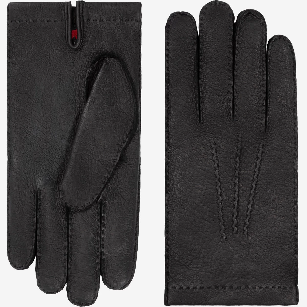 Peccary Leather: Peccary leather is prized for its remarkable softness and natural elasticity. It molds gently to your hands, providing a comfortable fit that feels effortless. The grainy texture, highlighted by its signature three-pore pattern, adds a distinct touch of luxury. Designed to last a lifetime with proper care, these gloves are as enduring as they are elegant—perfect for men who demand the best.