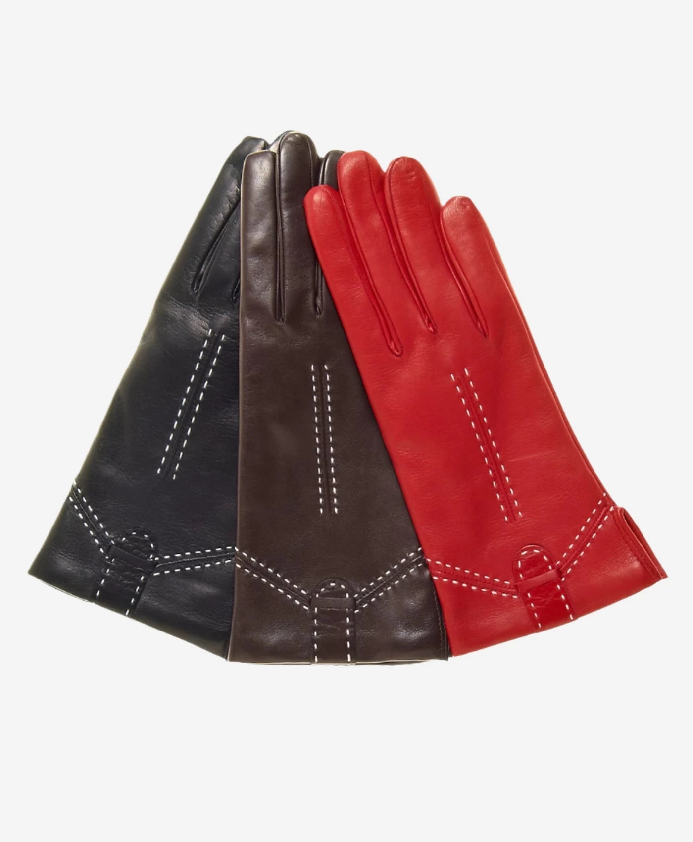 Made of bold, beautiful leather from fine Italian lambskin, these imported women’s winter gloves will keep your hands warm in style. The experts at Fratelli Orsini in Italy have machine sewed these gloves with incredible attention to detail, notably present in the decorative overstitching that adds personality to the wrist and back of the hand. Wearing these gloves is a dream come true, as they are lined with the softest, purest Italian cashmere to pamper and warm hands all winter long.