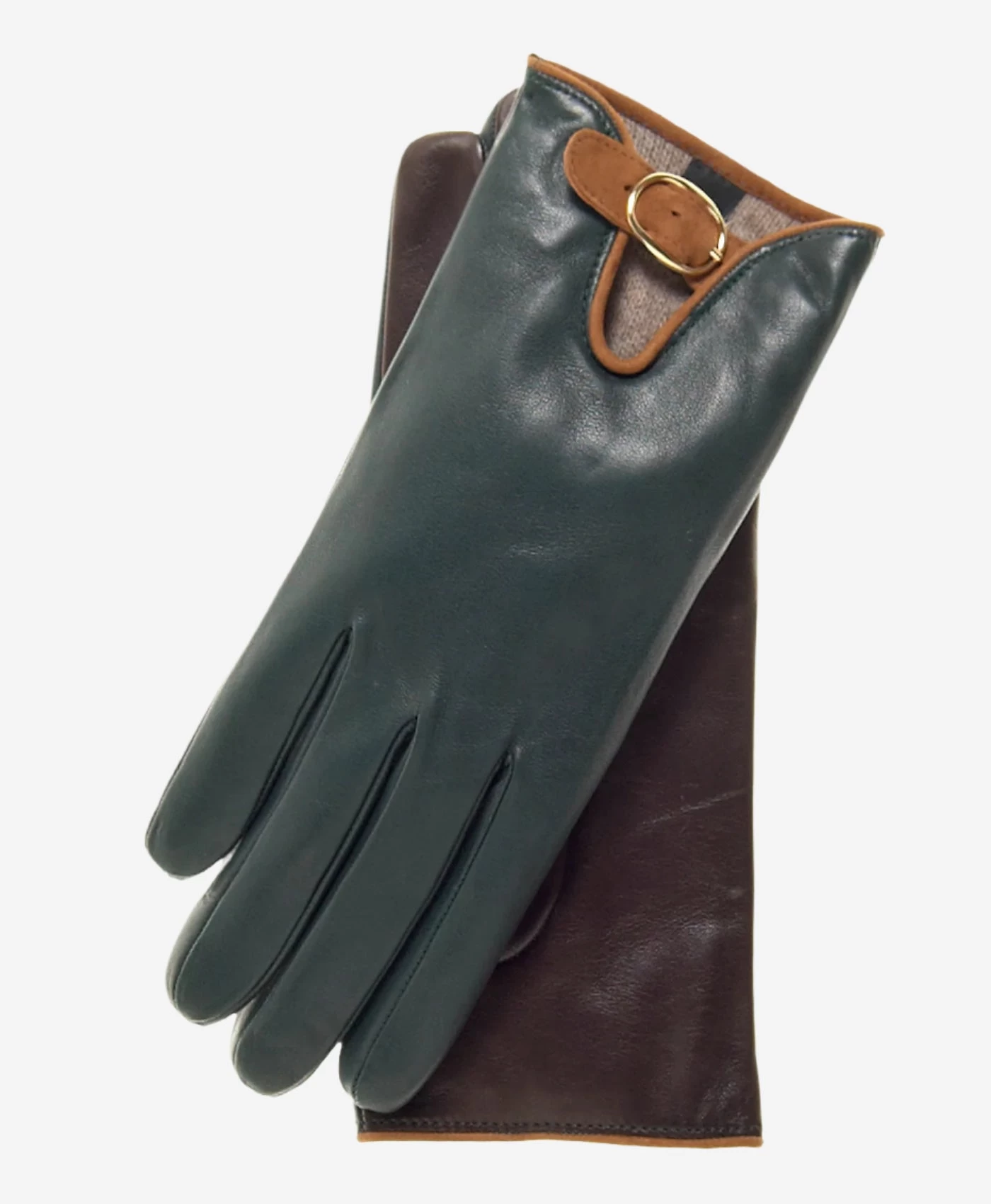 These stunning Italian Leather Gloves combine the fine craftsmanship you expect from Fratelli Orsini with beautiful contrasting leathers to create a new classic. With echoes of traditional horse gear, but updated for wearing anytime from casual to dress, these artisan gloves feature details like the finest Italian cashmere lining, a contrasting suede hem and belt with a brass buckle, and the finest Italian lambskin shell.