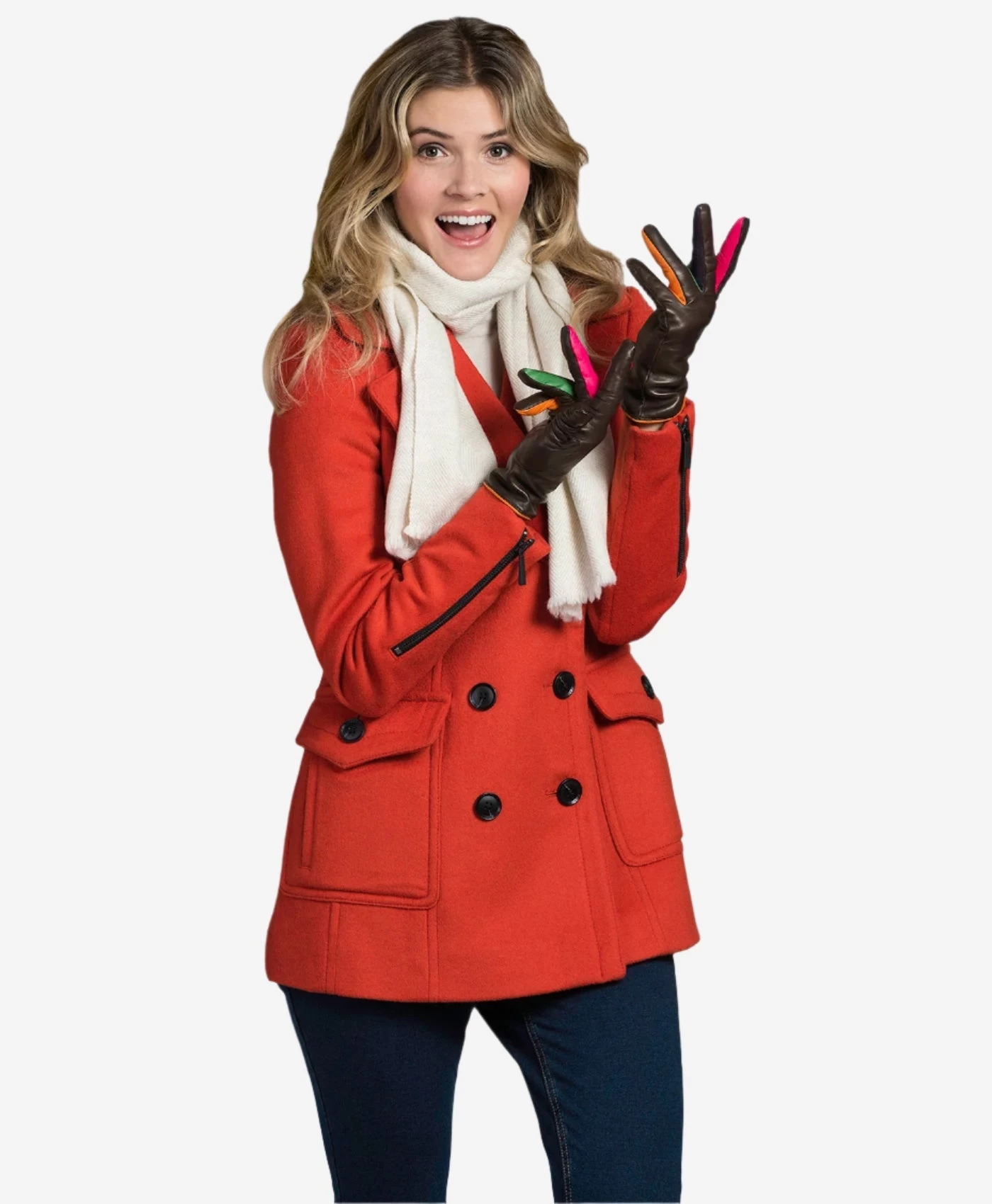 Made in Italy by Fratelli Orsini, these lambskin leather gloves for women are elegant and fun at the same time. The shell is the finest lambskin leather like all our gloves by Fratelli Orsini, yet it’s the added color on the fourchettes between the fingers that make the gloves and their wearer stand out. Lined in luxurious 100% Italian cashmere. Vibrant, colorful and full of life, these beautiful gloves are a great choice for dress and casual wear.