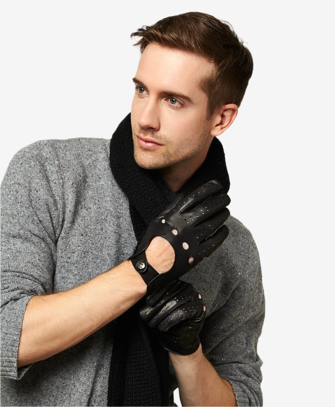 These beautiful unlined men’s gloves are what come to mind when we think of classic driving gloves. Leather from the finest Italian lambskin is soft and elegant, allowing great flexibility and an exceptional grip on the wheel. Distinct knuckle holes and a snap closure on the back add essential style, while vent holes on both sides will keep your hands cool and dry. The artisans at Fratelli Orsini in Italy have included extraordinary details throughout, so these men’s driving gloves offer a beautiful fit at an excellent price.