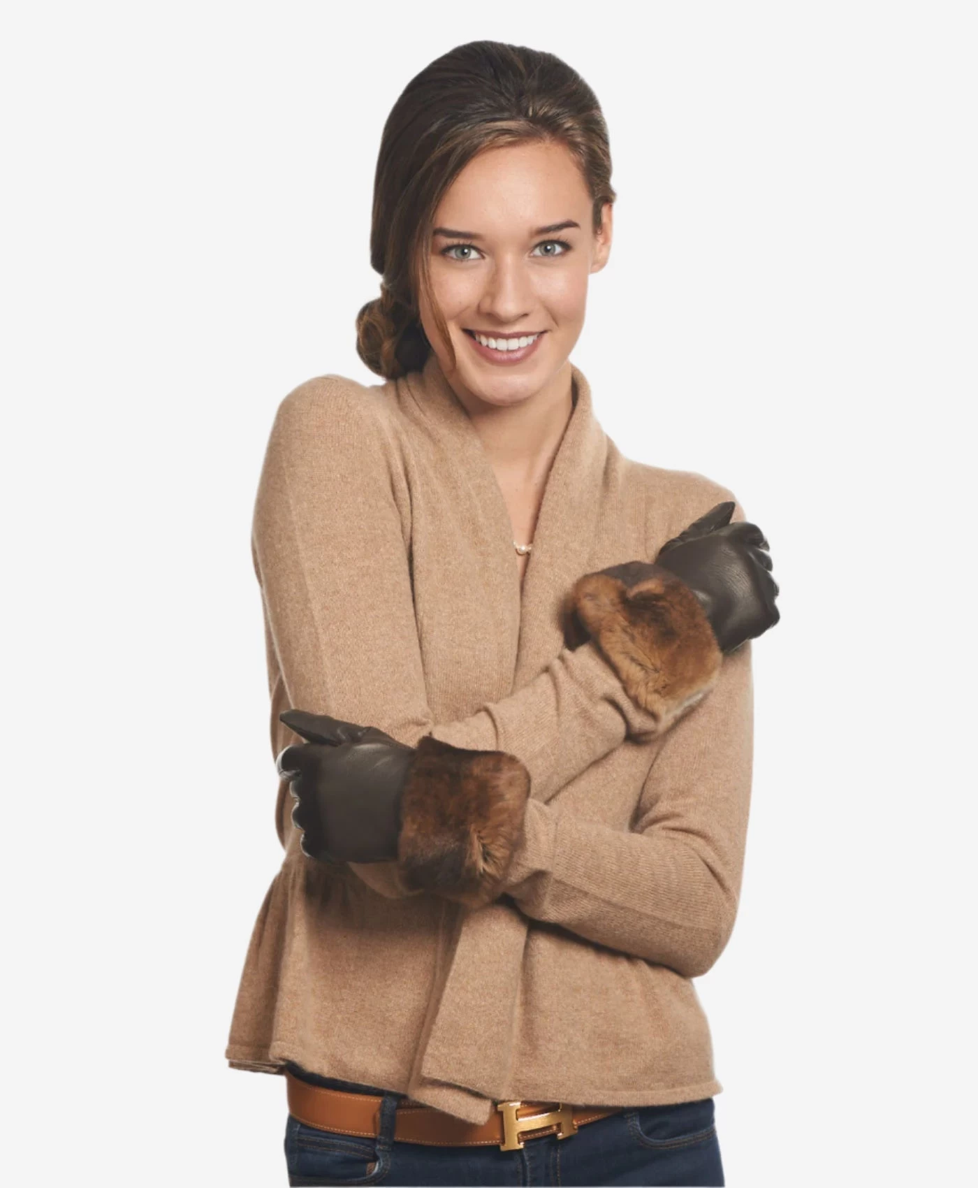 ● Soft and beautiful lambskin leather gloves with Orylag Rabbit Fur Cuff