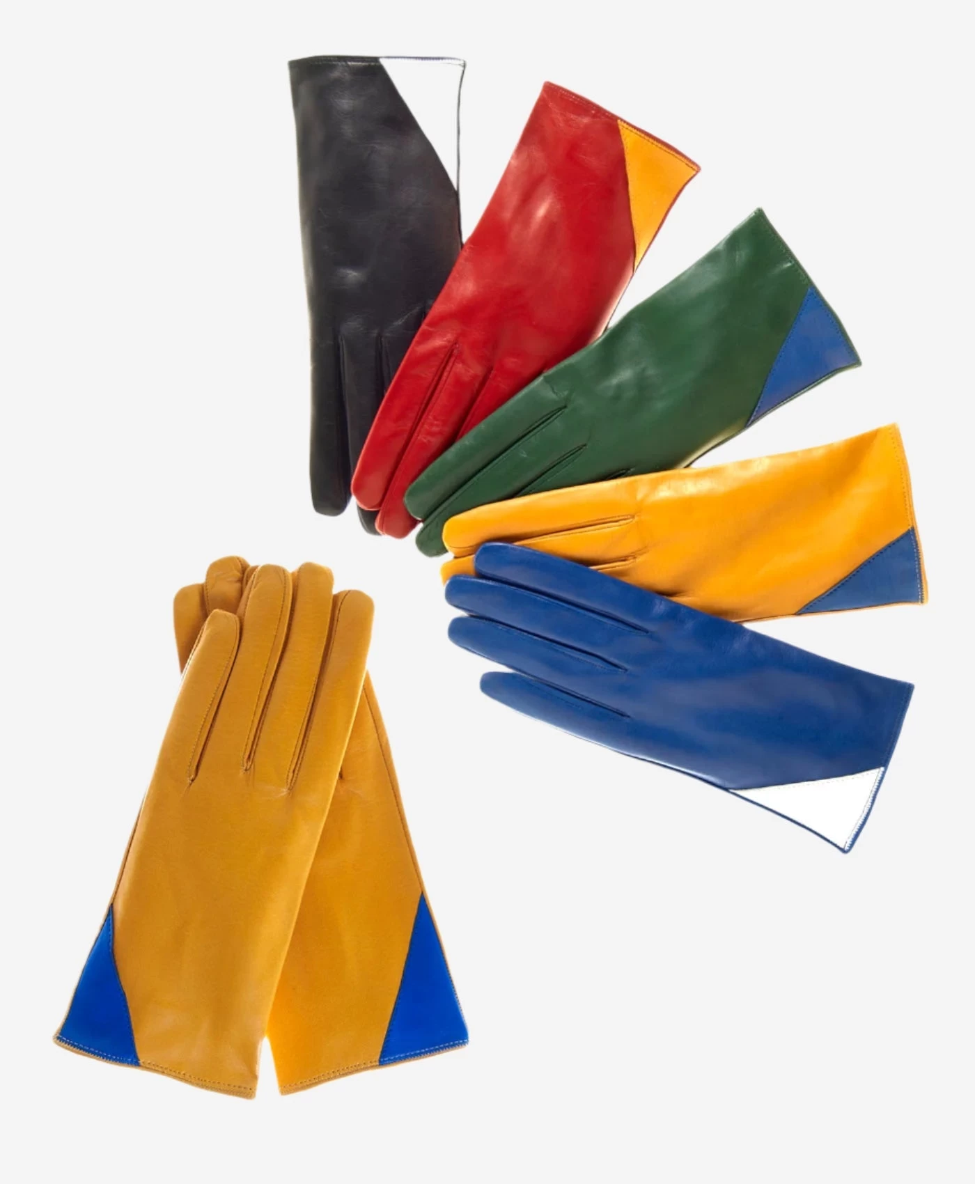 Have fun and be bold with a big splash of color with these fine gloves with color block designs by Fratelli Orsini. Bringing you the best runway trends at a very affordable price, these color blocking gloves come in 4 different colorways so one or more is sure to go with just the right outfit. Like all Fratelli Orsini gloves, crafted to the highest standards of 100% Italian sourced leather and silk.