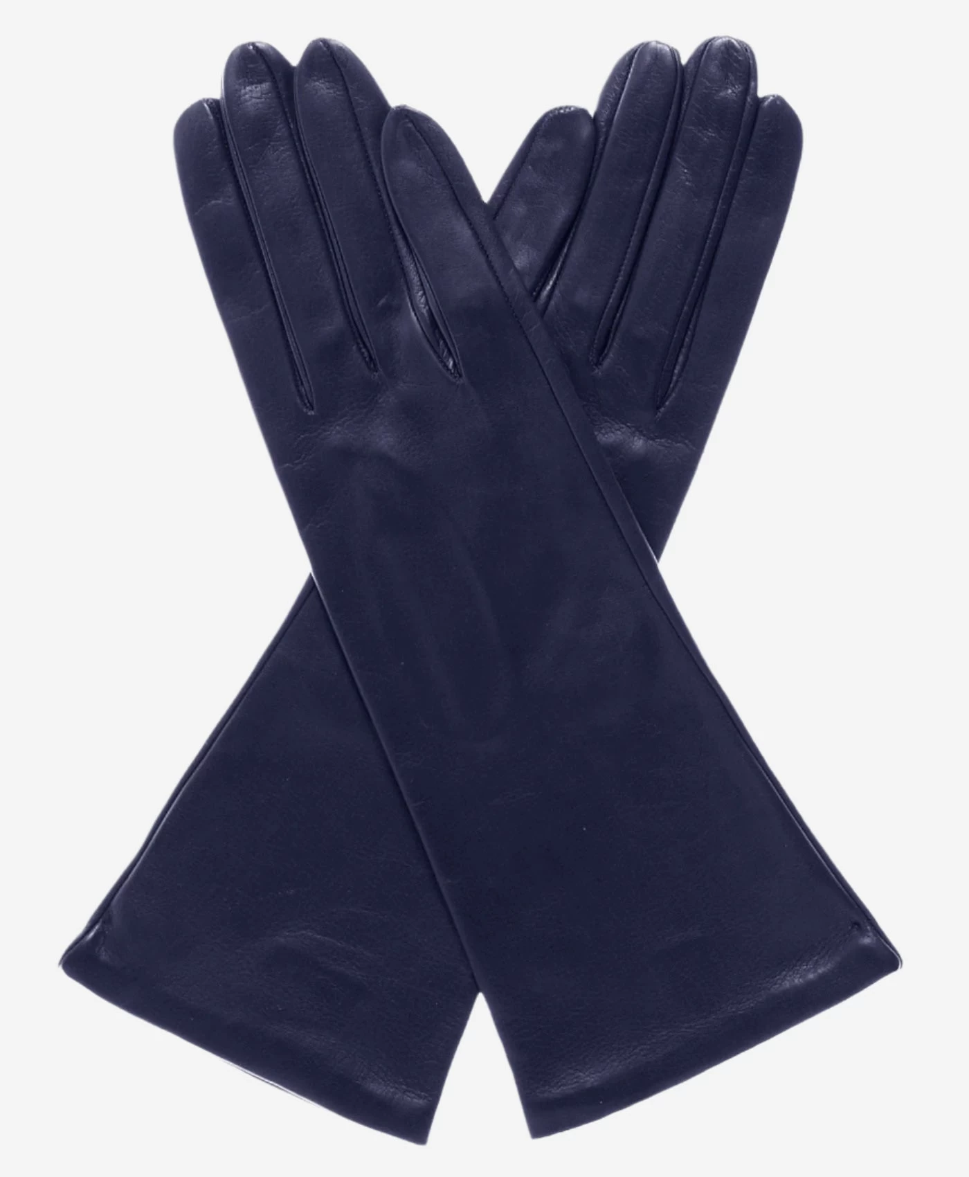 These long leather gloves for women are the perfect accessory for a special evening at a formal event or just a night on the town. There are no buttons or decorative details, just a silky smooth classic style of the absolute highest quality. The exceptional Italian glovemakers at Fratelli Orsini have included a beautiful white silk lining to complement the shell, which is a black, brown, red or white leather of fine Italian lambskin. The four-button length extends up the arm and comes to rest between the wrist and elbow.