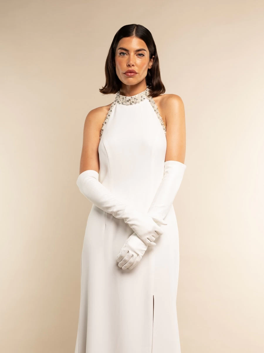 12-Button length extends just beyond the elbow, perfect for a wedding, debutante ball or an opera.