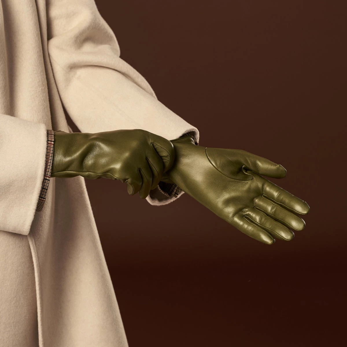 Leather: Made from premium Italian lambskin, these gloves offer a buttery-soft feel and a perfect fit, crafted with the finest attention to detail for a second-skin experience.
