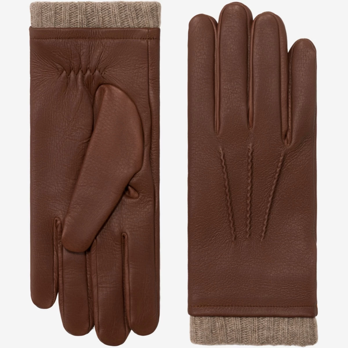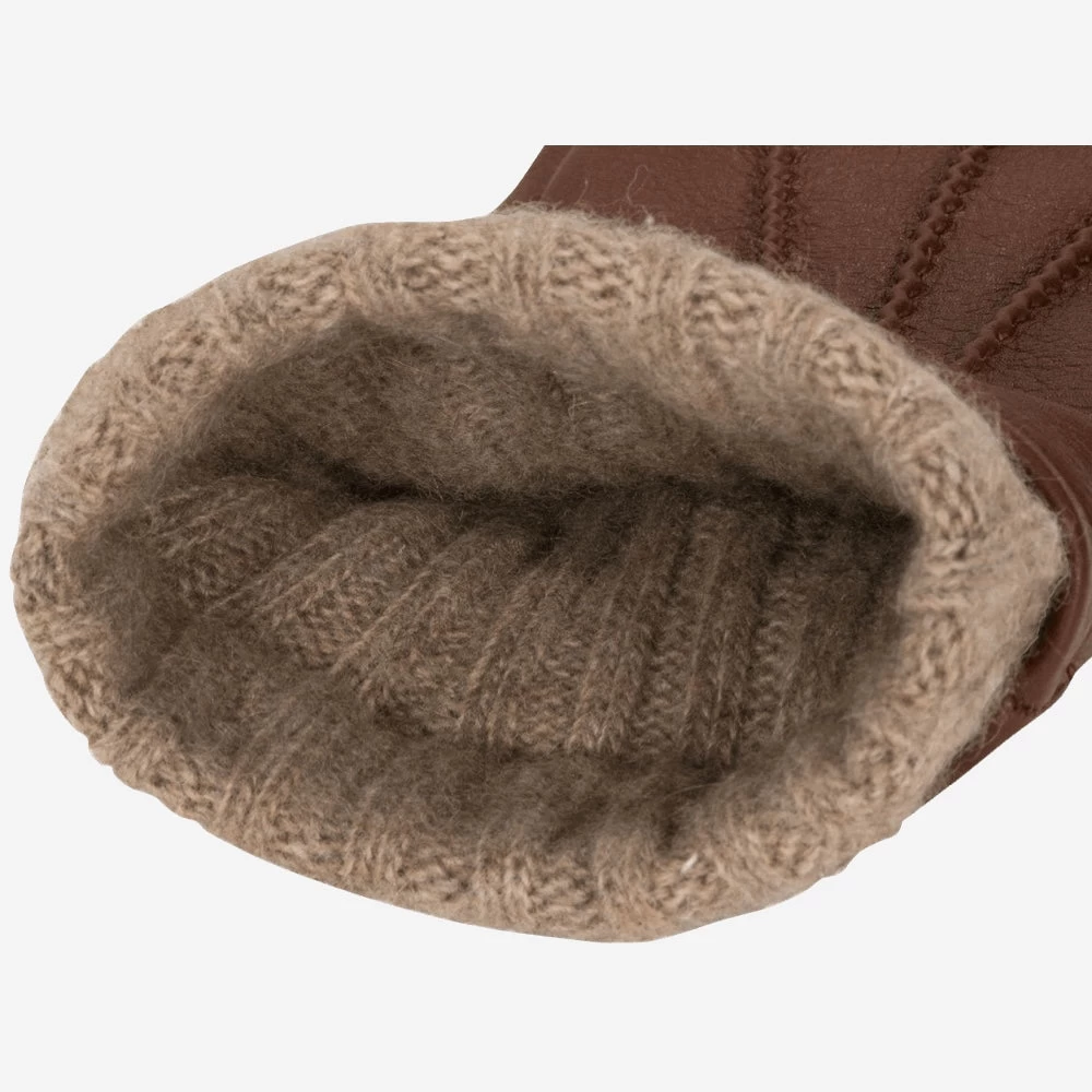 Cashmere lining: Fully lined with luxurious knit cashmere, they deliver superior warmth and softness. The lining extends slightly beyond the leather for added coverage and a touch of understated style.