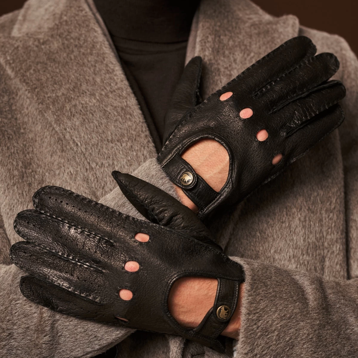 Peccary Leather: Peccary leather is prized for its soft, flexible nature, making the Marcello gloves incredibly comfortable to wear. Designed with ventilation holes, they keep your hands cool and prevent sweating during long drives. The unlined construction ensures maximum dexterity and a natural feel on the steering wheel, giving you complete control on the road.