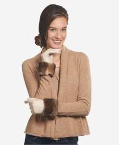 CR4450 (cream) – Women’s Italian Orylag Rabbit Fur Cuff Cashmere Lined Winter Leather Gloves