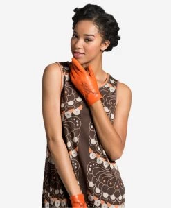 CC4668 (orange) – Women’s Orange Suede Winter Gloves Cashmere Lined With Unique Hand Detailing