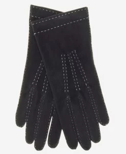 CS4104 (black) – Women’s Italian Silk Lined Handsewn Leather Gloves With Contrast Stitching