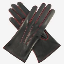 CS4175 (black/red) – Women’s Italian Silk Lined Leather Gloves With Contrast Decorative Stitching