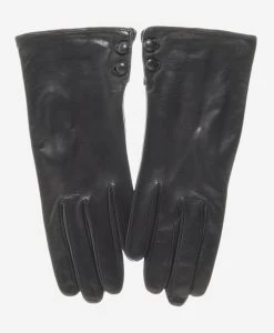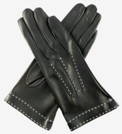 CS4204 (black) – Women’s Italian Silk Lined Leather Gloves With Contrast Decorative Stitching