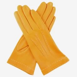 CS4204 (mustard) – Women’s Italian Silk Lined Leather Gloves With Contrast Decorative Stitching