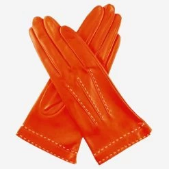 CS4204 (rust) – Women’s Italian Silk Lined Leather Gloves With Contrast Decorative Stitching