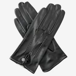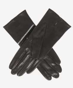 CS4628 (black) – Women’s Italian Leather Gloves With Italian Silk Lining And Swarovski Crystal Trim