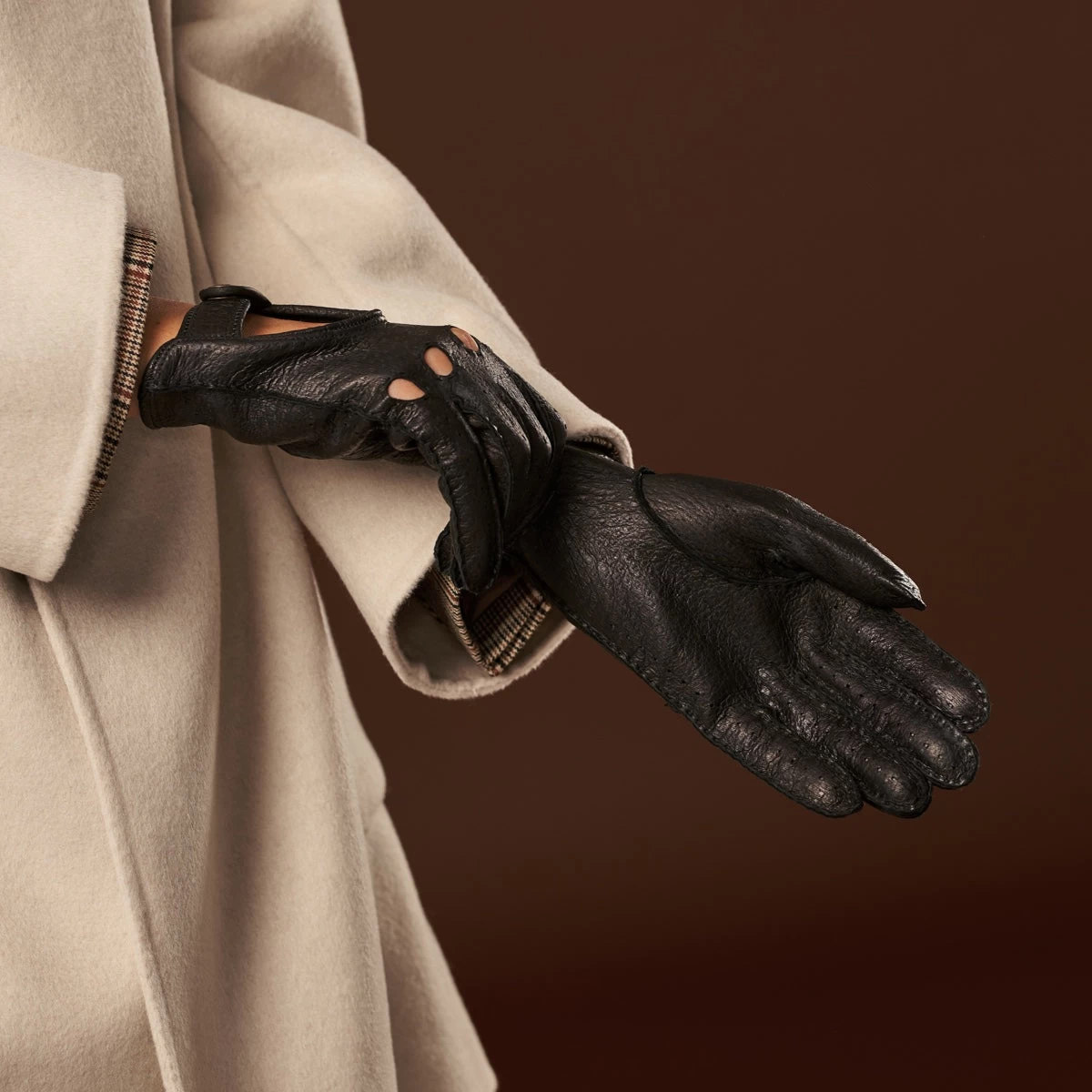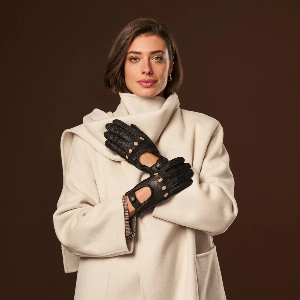 Peccary Leather: Known for its luxurious softness, peccary leather molds effortlessly to your hands, providing unparalleled comfort. The Rafaella gloves also feature discreet ventilation holes to keep your hands cool and prevent sweating during long drives. With their unlined design, these gloves give you maximum dexterity and control, making them the perfect driving companion.