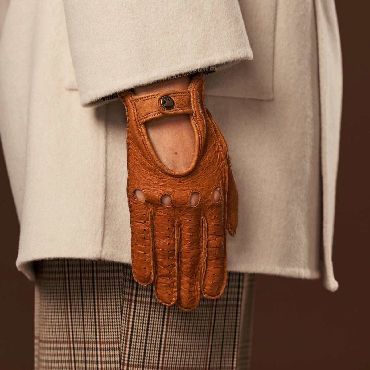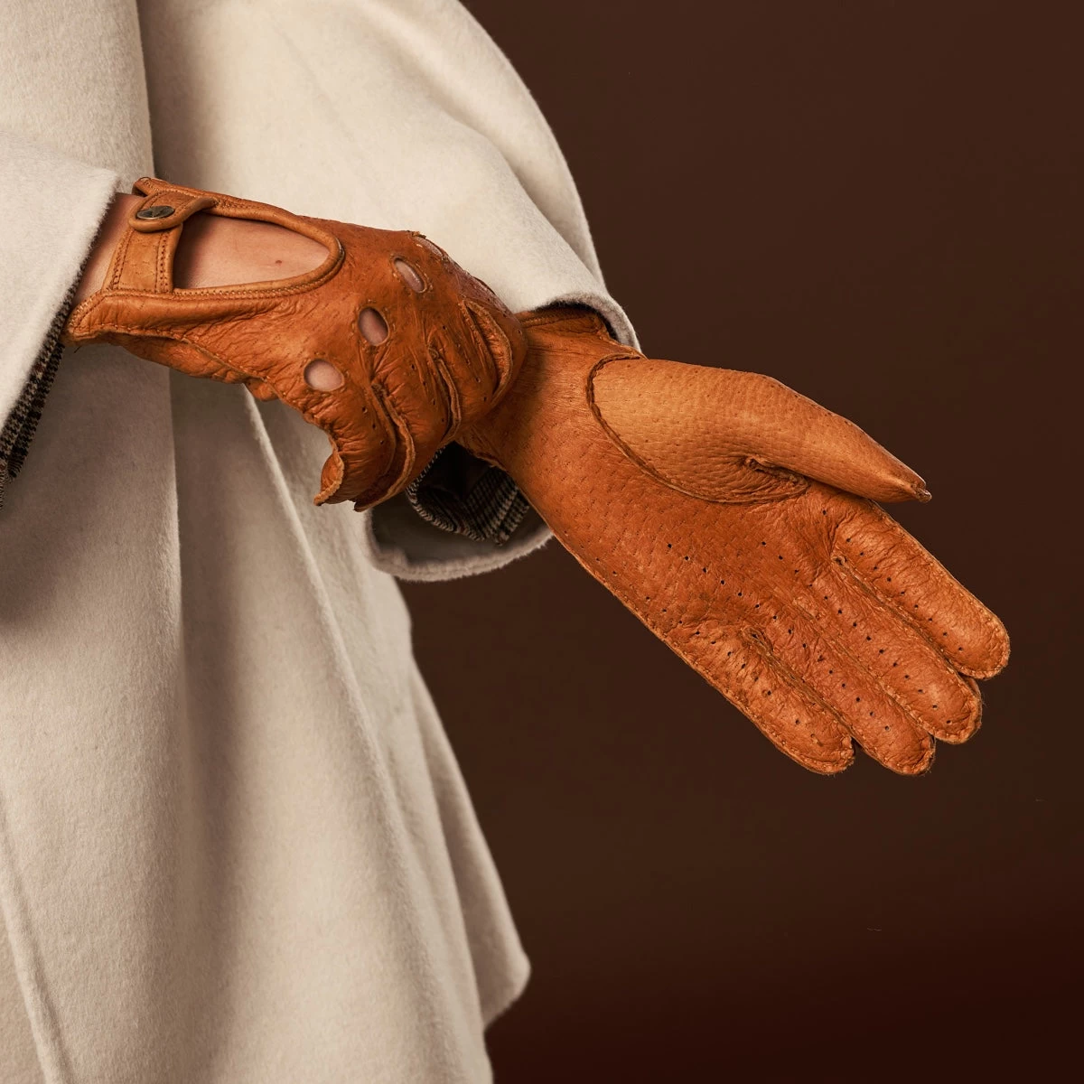 Peccary Leather: Known for its luxurious softness, peccary leather molds effortlessly to your hands, providing unparalleled comfort. The Rafaella gloves also feature discreet ventilation holes to keep your hands cool and prevent sweating during long drives. With their unlined design, these gloves give you maximum dexterity and control, making them the perfect driving companion.